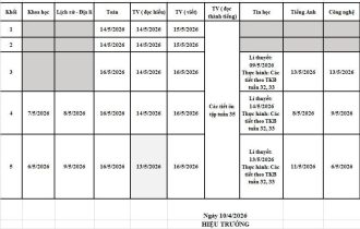 THỜI KHOÁ BIỂU TRƯỜNG TIỂU HỌC THANH LIỆT