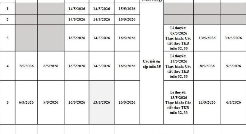 LỊCH KIỂM TRA CUỐI HỌC KỲ 2 NĂM HỌC 2025 – 2026
