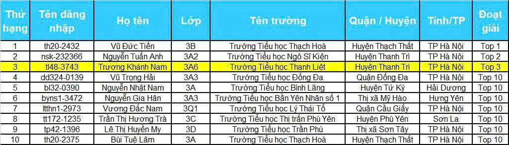 Một tràng pháo tay thật lớn dành cho em Trương Khánh Nam, học sinh lớp 3A6 – Trường Tiểu học Chu Văn An (tên cũ: TH Thanh Liệt), phường Thanh Liệt! 👏👏👏