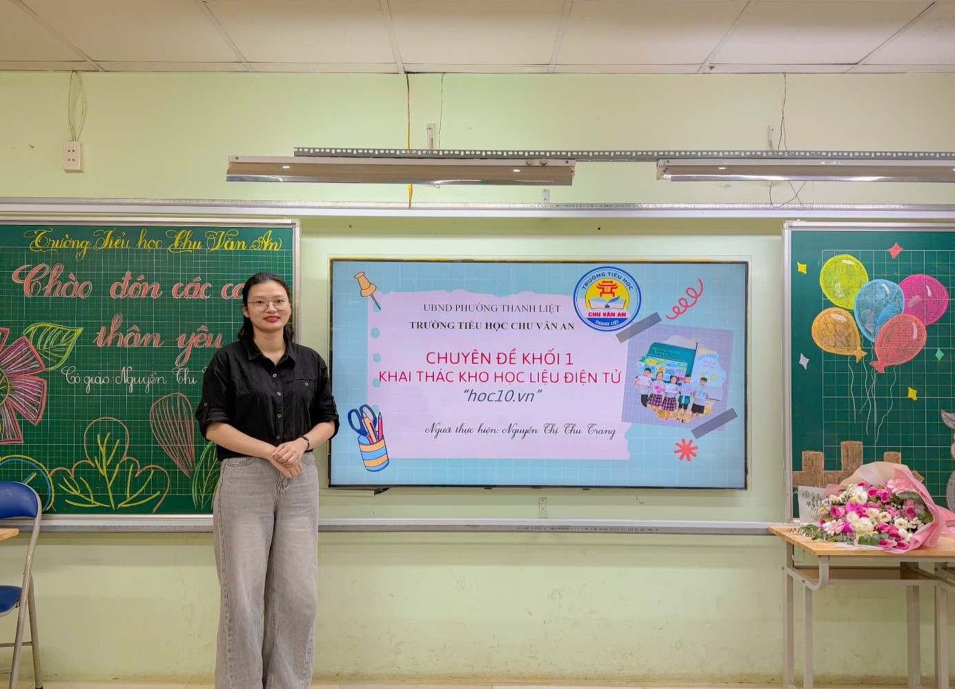 Trong phần chia sẻ chuyên môn, cô giáo Nguyễn Thị Thị Trang đã giới thiệu tổng quan về hoc10.vn – kho học liệu số phong phú, đa dạng, giúp giáo viên dễ dàng tìm kiếm, chọn lọc và áp dụng tài nguyên vào kế hoạch dạy học. Giáo viên được hướng dẫn cách tìm kiếm học liệu phù hợp, tải về, chỉnh sửa và kết hợp nội dung số vào bài giảng nhằm nâng cao tính trực quan và hiệu quả tiếp nhận kiến thức của học sinh.