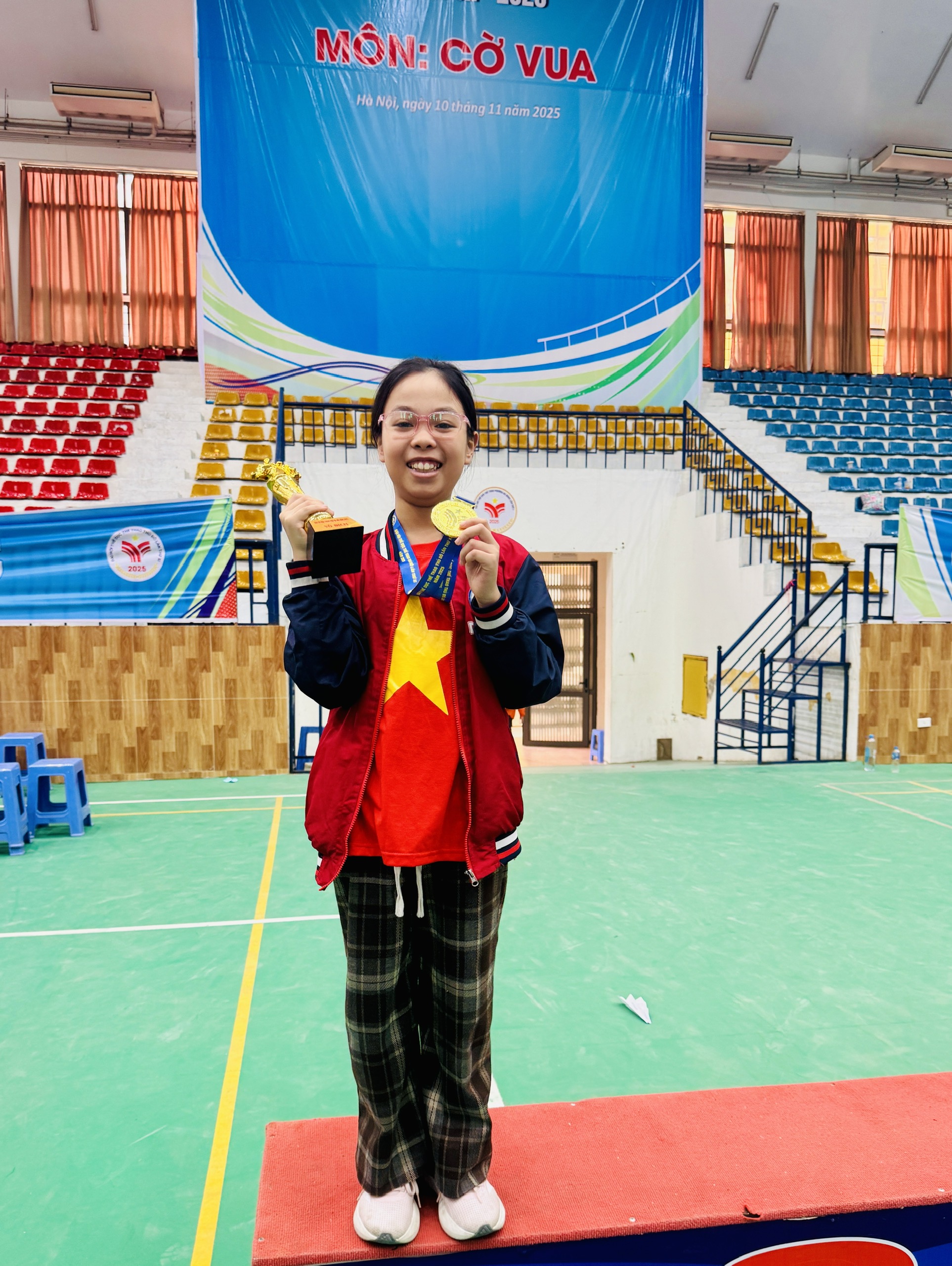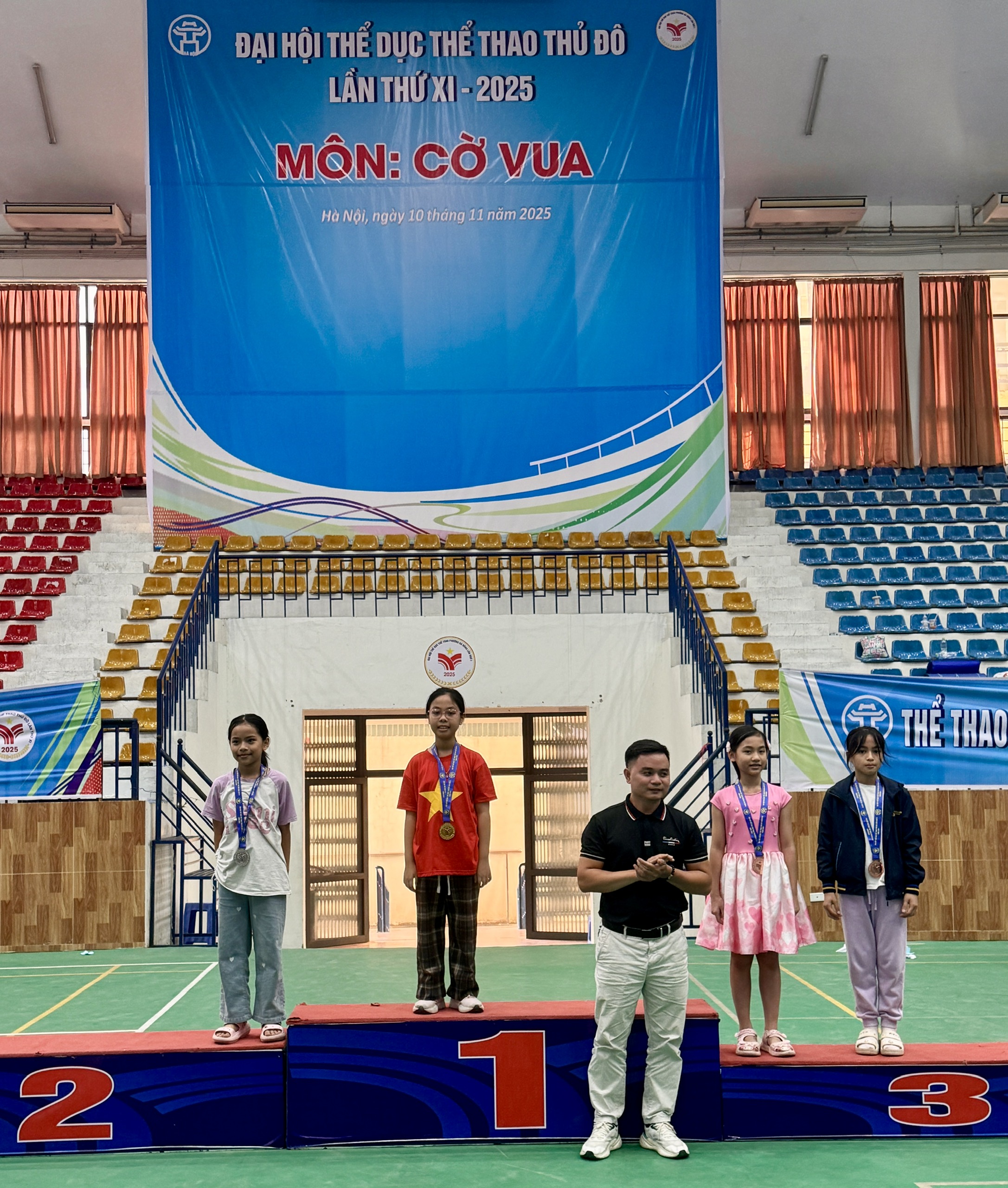 Kết thúc nội dung môn Cờ vua tại Đại hội Thể dục Thể thao Thành phố lần thứ XI năm 2025, em Phạm Ngọc Diệp – học sinh lớp 4A6 trrường Tiểu học Chu Văn An đã giữ vững phong độ thi đấu của mình. Với bản lĩnh vững vàng và chiến thuật thông minh, em xuất sắc vượt qua các đối thủ cùng lứa tuổi 8–9 và giành giải Nhất Cờ vua cấp Thành phố. Xin chúc mừng Phạm Ngọc Diệp – kỳ thủ nhí tài năng, chúc em tiếp tục tỏa sáng trên những hành trình mới và viết tiếp những chiến thắng rực rỡ trong tương lai!