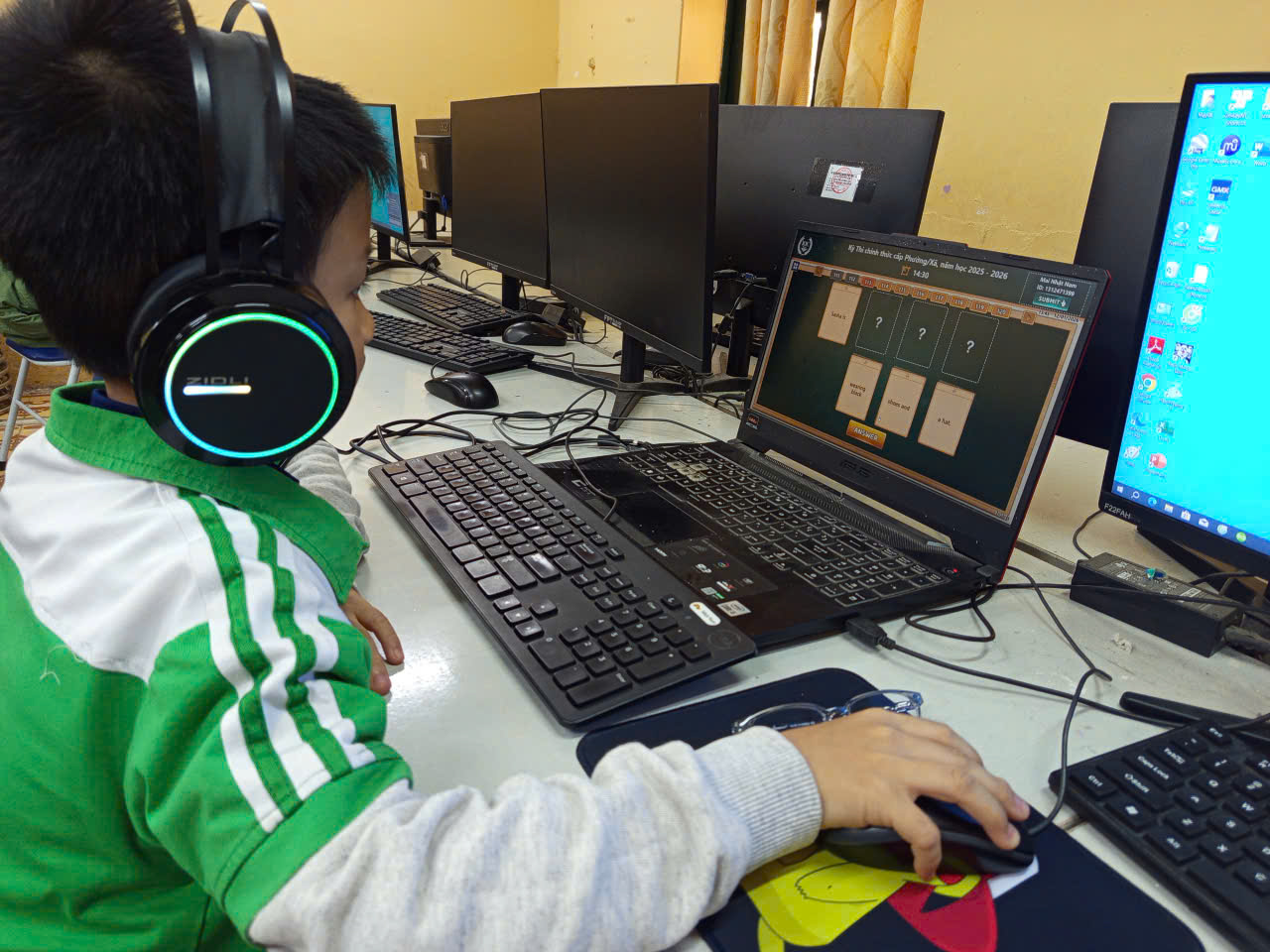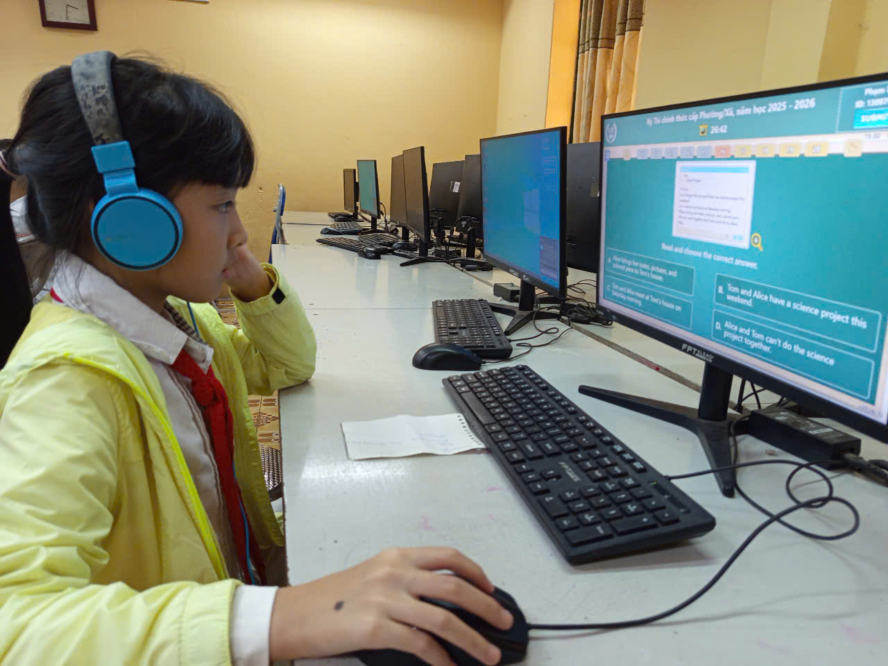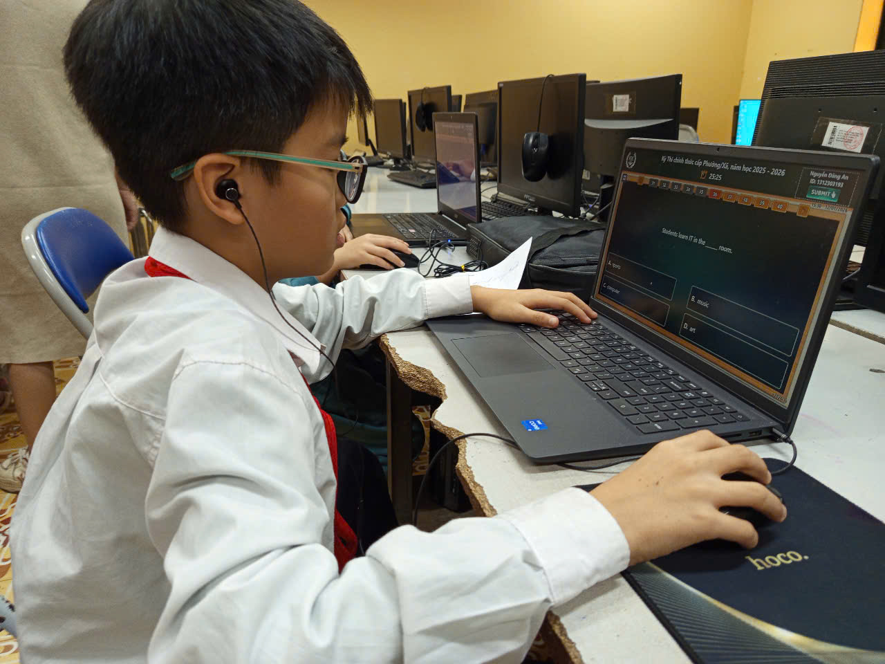 Ngày 12 tháng 01 năm 2026. Học sinh trường tiểu học Chu Văn An tích cực tham gia các kỳ thi Tiếng Anh trực tuyến IOE với tinh thần tự tin và quyết tâm cao. Thông qua sân chơi này, các em có cơ hội rèn luyện kỹ năng nghe, nói, đọc, viết và nâng cao khả năng giao tiếp. Việc tham gia thi giúp học sinh phát hiện năng lực bản thân, bồi dưỡng niềm yêu thích với môn Tiếng Anh. Đây cũng là dịp để các em giao lưu, học hỏi và tích lũy kinh nghiệm học tập. Kỳ thi góp phần tạo động lực để học sinh không ngừng cố gắng, vươn lên trong học tập và hội nhập quốc tế.