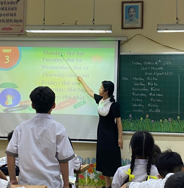 Cô giáo Nguyễn Thị Diệu đem đến bài dạy môn Tiếng Anh lớp 3 – Unit 3: Our Friends (Lesson 2, Parts 1–3). Những trò chơi ngôn ngữ, luyện phát âm và đối thoại nhóm giúp học sinh tự tin, chủ động giao tiếp. Những tiếng cười vui trong giờ dạy vang lên giòn giã như một bản hòa âm của niềm vui học tập.