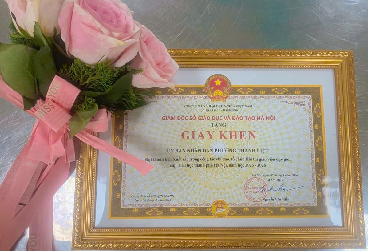 🌟 Sáng ngày 09/4/2026, Sở Giáo dục và Đào tạo Hà Nội tổ chức hội nghị tổng kết Hội thi giáo viên dạy giỏi cấp Tiểu học thành phố Hà Nội năm học 2025 – 2026. Trải qua các vòng thi sôi nổi từ cấp cơ sở, 186 giáo viên ưu tú nhất đã được lựa chọn từ cấp xã, phường để tiếp tục khẳng định bản lĩnh ở vòng thi cấp Thành phố. 📚 Tại lễ trao giải, Ủy ban nhân dân phường Thanh Liệt vinh dự được nhận giấy khen Đạt thành tích Xuất sắc trong công tác chỉ đạo, tổ chức Hội thi Giáo viên dạy giỏi cấp Tiểu học thành phố Hà Nội, năm học 2025-2026.