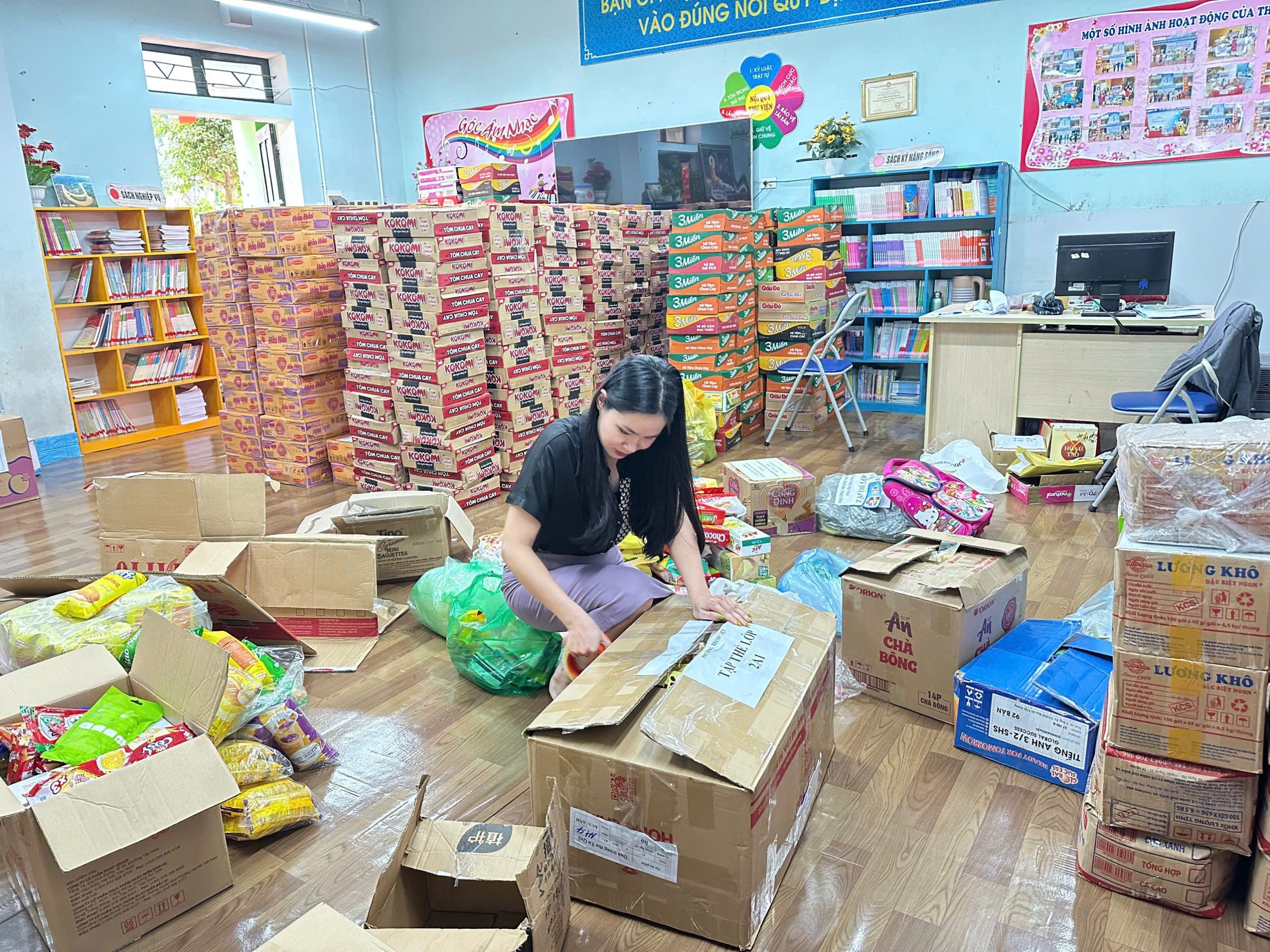 Chiều và tối ngày 11/10, đoàn viên nhà trường đã cùng nhau phân loại, đóng gói các thùng quà. Những thùng đồ được xếp cẩn thận, từng gói quà được gói ghém bằng cả tấm lòng, kèm theo là những lời chúc gửi gắm yêu thương. Tất cả như được sưởi ấm bởi tinh thần sẻ chia và trái tim nhân ái của tuổi trẻ. Hy vọng những đóng góp chân thành ấy sẽ tiếp thêm một chút hơi ấm, để những đôi chân đang đứng giữa gian khó vẫn vững vàng trên con đường gieo chữ, và để các em học sinh vẫn có thể cất tiếng cười sau những ngày mưa bão.