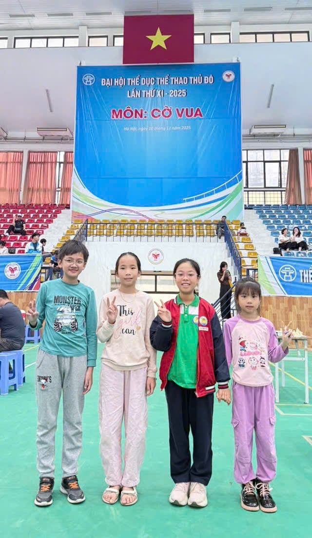 Chiều ngày 11/11/2025, bốn gương mặt tiêu biểu trong Đội tuyển Cờ vua của Trường Tiểu học Chu Văn An (phường Thanh Liệt, TP. Hà Nội) đã chính thức ra quân, tham gia tranh tài tại Đại hội Thể dục Thể thao Thủ đô lần thứ XI – năm 2025.