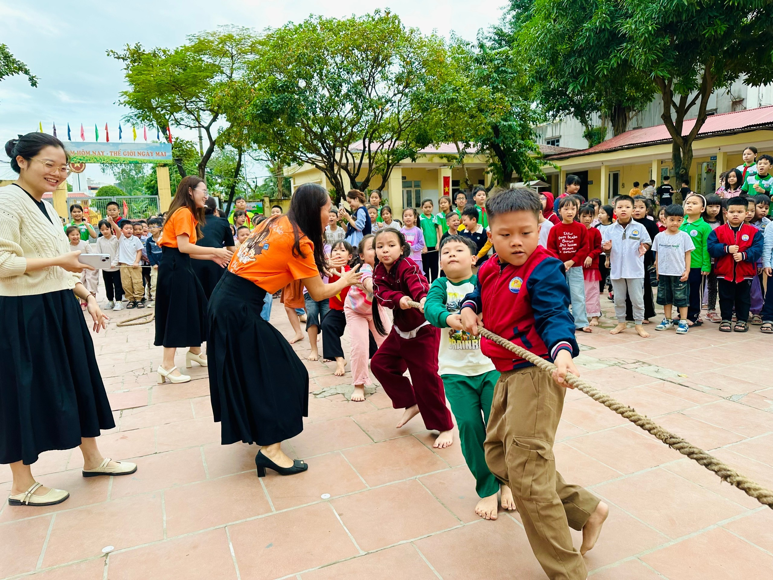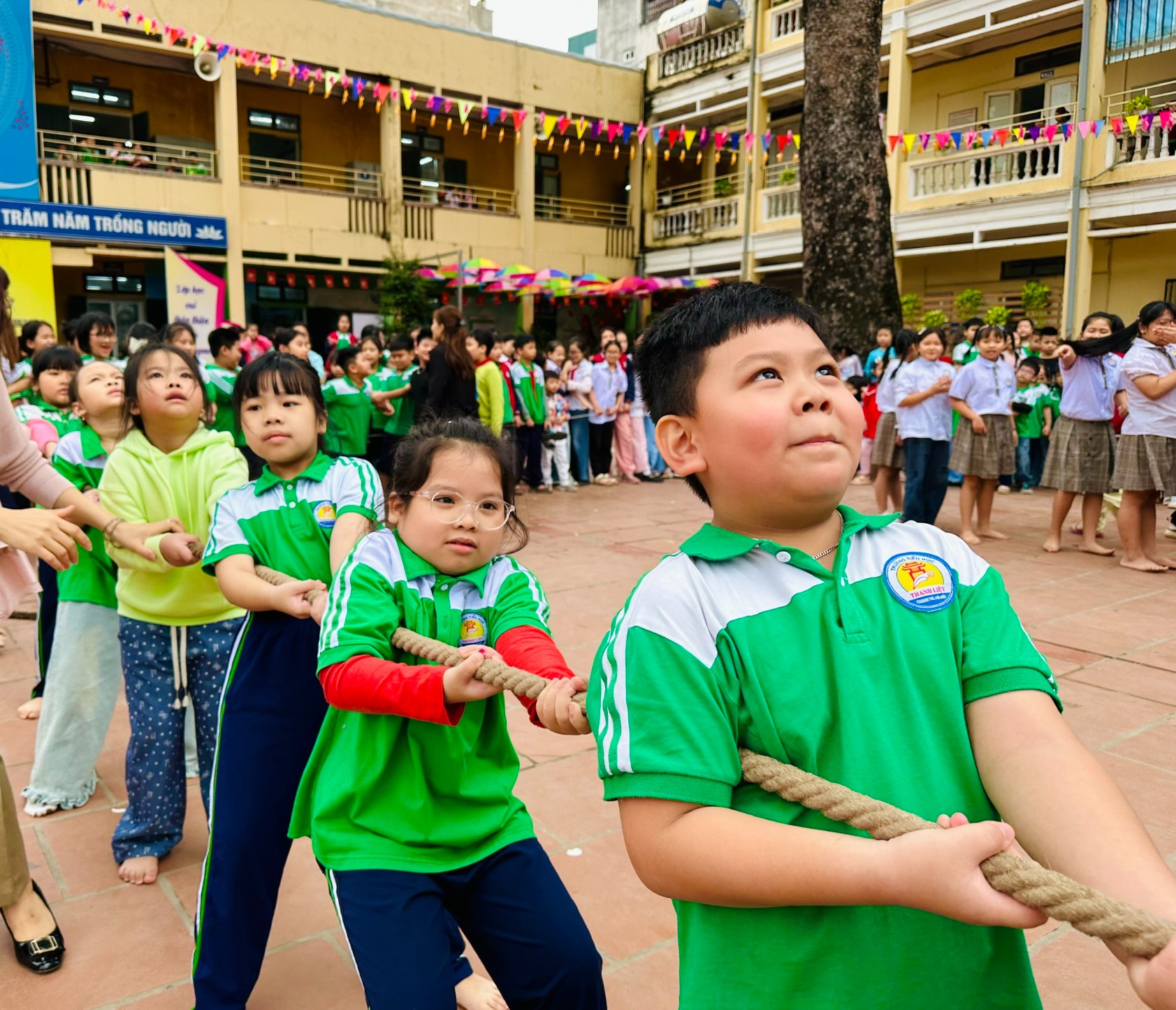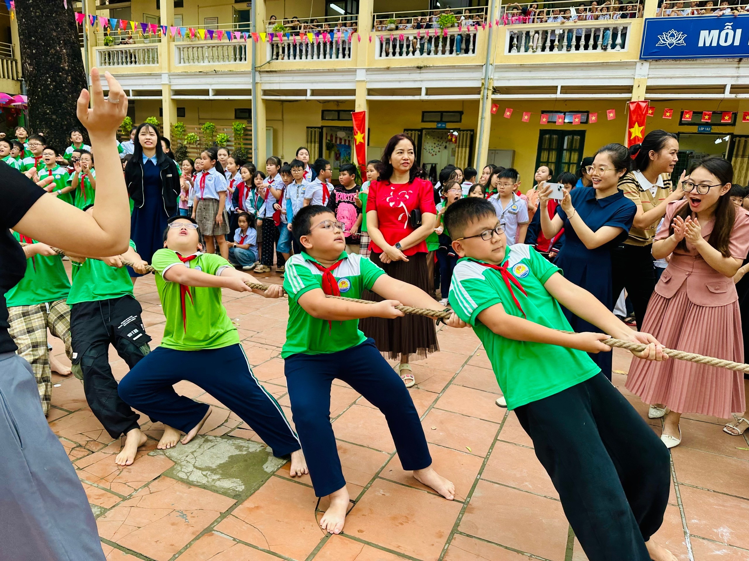 Niềm vui khi được tham gia hoạt động thể thao hiện rõ trên gương mặt tươi sáng của từng em nhỏ. Giải kéo co không chỉ mang đến một sân chơi lành mạnh, bổ ích mà còn là cơ hội để học sinh giao lưu, học hỏi, tăng cường tinh thần đoàn kết và rèn luyện thể lực nhằm học tập tốt hơn.