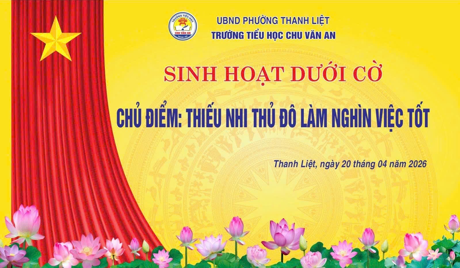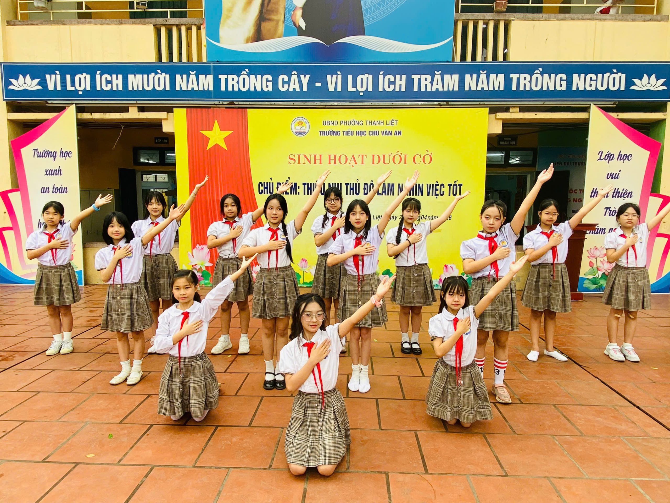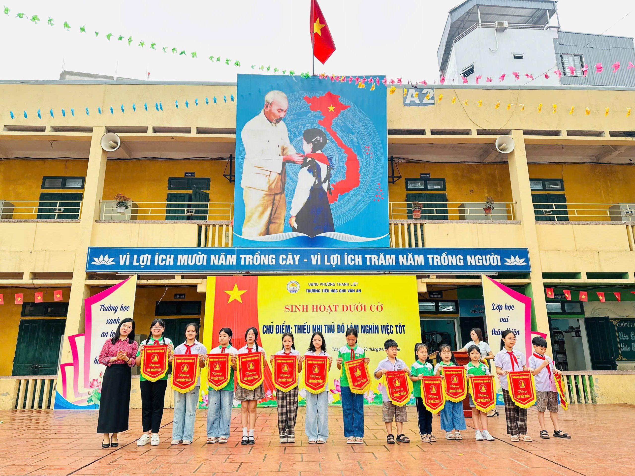 Sáng ngày 20/4/2026, trong không khí trang nghiêm và đầy hứng khởi của buổi sinh hoạt dưới cờ đầu tuần, Liên đội trường Tiểu học Chu Văn An- phường Thanh Liệt đã tổ chức sinh hoạt với chủ điểm “Thiếu nhi Thủ đô làm nghìn việc tốt”. Đây là dịp để các em học sinh cùng nhìn lại những hành động đẹp, lan tỏa những giá trị tích cực và tiếp tục nuôi dưỡng tinh thần sống nhân ái, trách nhiệm trong học đường.