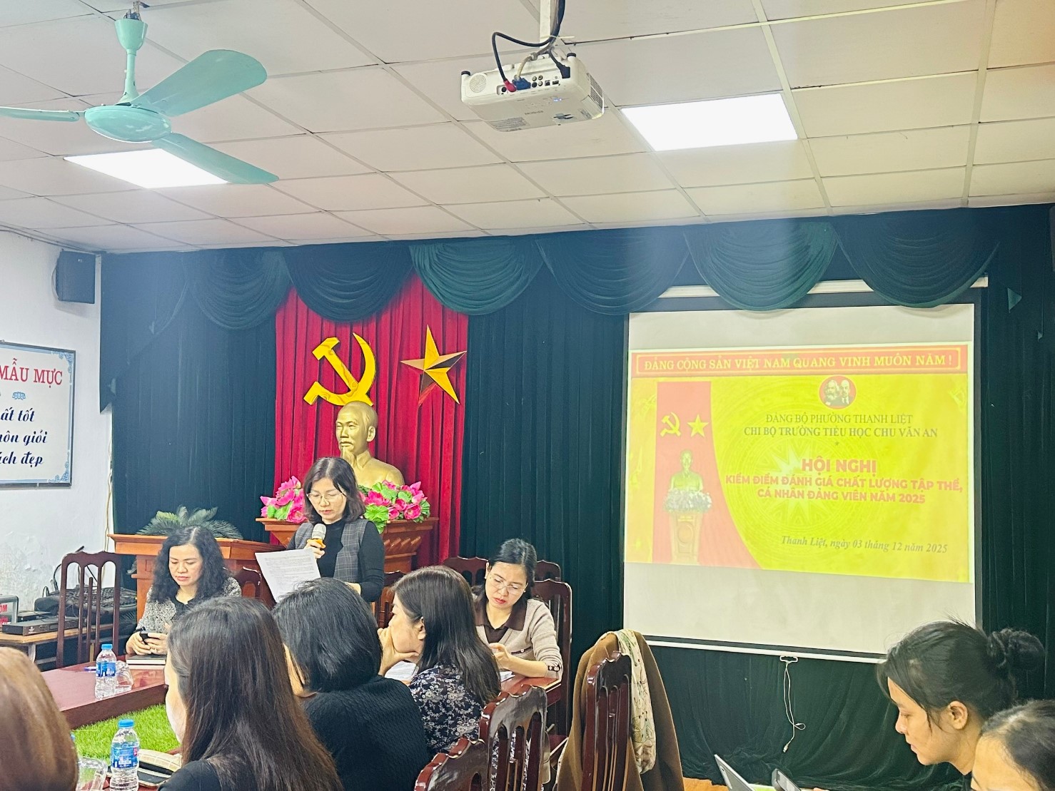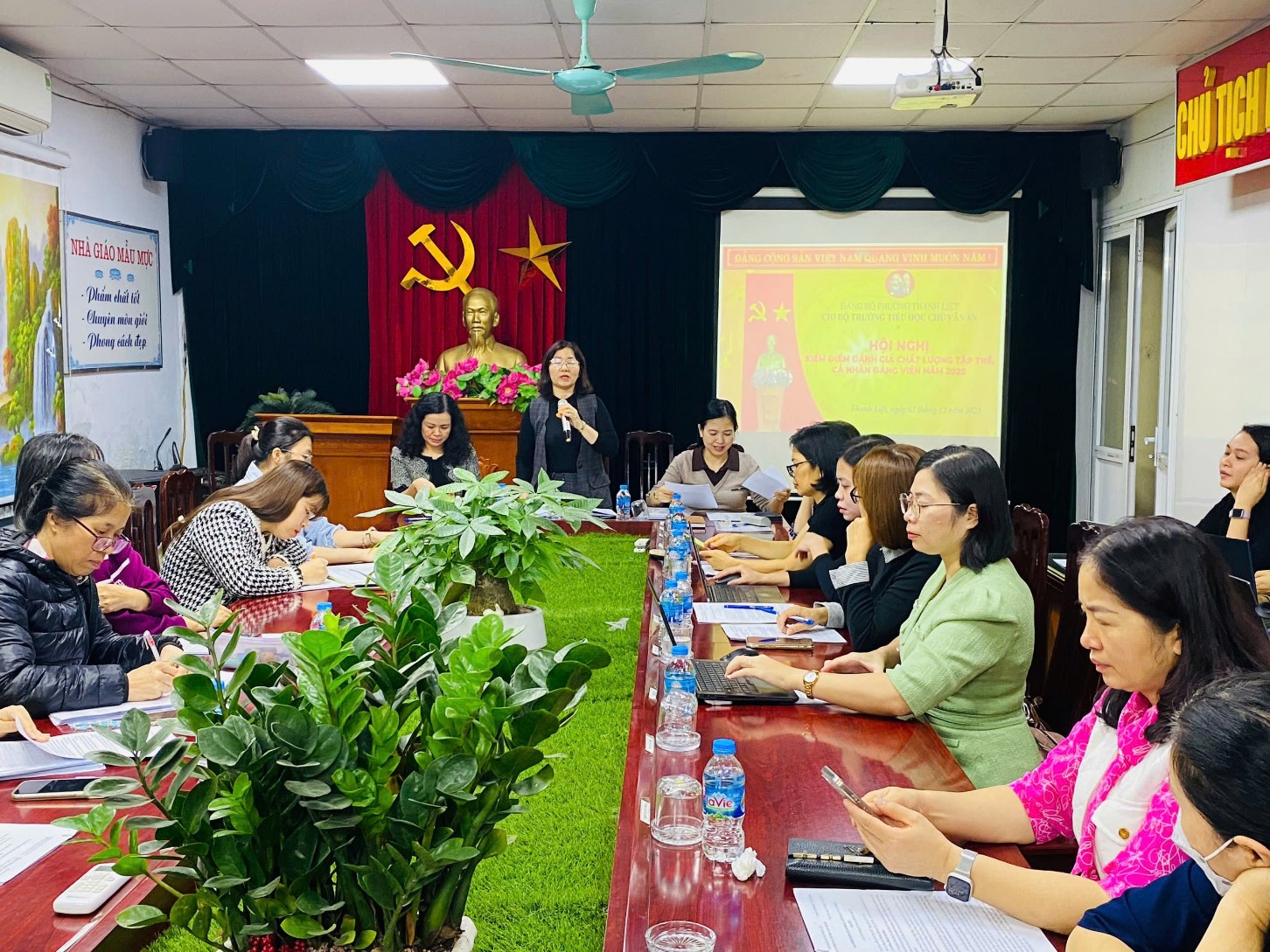 Chi bộ trường TH Chu Văn An có mặt 40 đồng chí, do đồng chí Bí thư Trần Thị Loan chủ trì, hội nghị đã họp và thảo luận, từng đồng chí đọc bản tự kiểm điểm, đánh giá của bản thân. Thông qua kết quả đánh giá nhận xét đảng viên của chi bộ, ý kiến nhận xét của Chi ủy và Ban công tác mặt trận nơi cư trú và ý kiến đóng góp của tập thể đối với từng đồng chí, đã biểu quyết nhận xét, đánh giá phân loại cán bộ lãnh đạo, quản lý bằng hình thức bỏ phiếu kín.