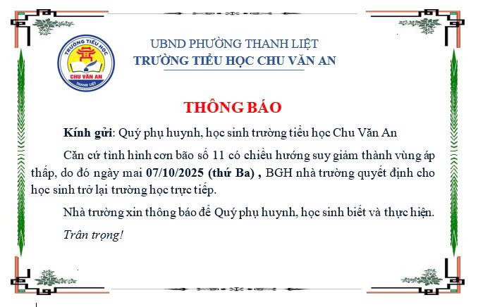 - THÔNG BÁO LIÊN QUAN ĐẾN NGUỒN THỰC PHẨM CHO BỮA ĂN BÁN TRÚ TẠI TRƯỜNG TIỂU HỌC CHU VĂN AN