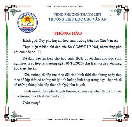 - THÔNG BÁO LIÊN QUAN ĐẾN NGUỒN THỰC PHẨM CHO BỮA ĂN BÁN TRÚ TẠI TRƯỜNG TIỂU HỌC CHU VĂN AN