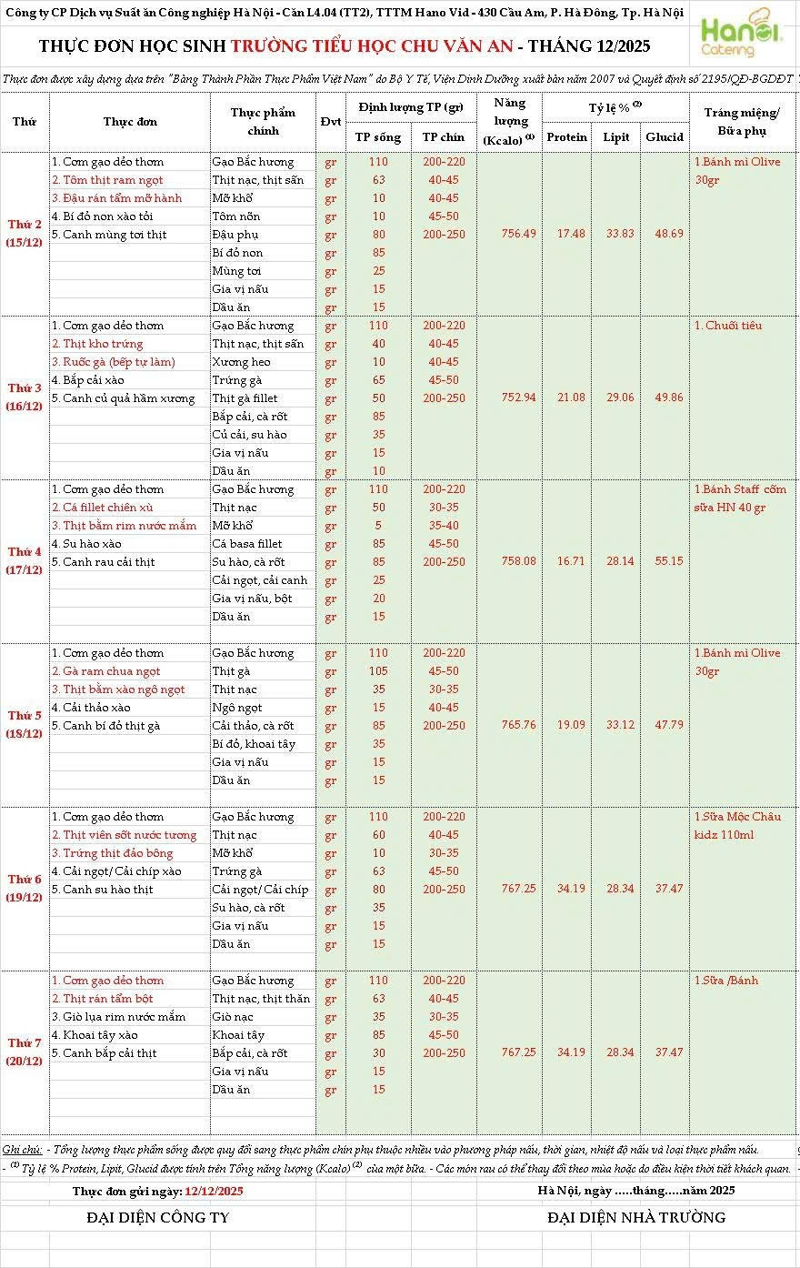 Thực đơn bán trú tuần 15 (Ngày 15/12 – 20/12/2025)