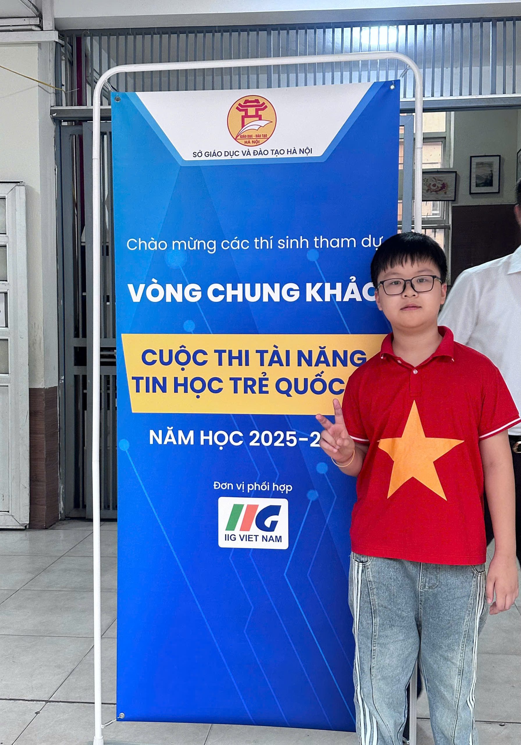 Em Vũ Thế Long – học sinh lớp 5A7 đã xuất sắc đại diện cho các em học sinh phường Thanh Liệt tham gia Cuộc thi Tài năng Tin học trẻ Quốc tế – Vòng chung khảo cấp thành phố Hà Nội năm học 2025 – 2026. Đây là niềm vinh dự và tự hào lớn không chỉ của bản thân em mà còn của thầy cô và các bạn học sinh trong toàn phường. Chúc em Vũ Thế Long luôn tự tin, bình tĩnh, phát huy tốt khả năng của mình và đạt kết quả thật xuất sắc trong vòng thi quan trọng này. 💻🏆🌟