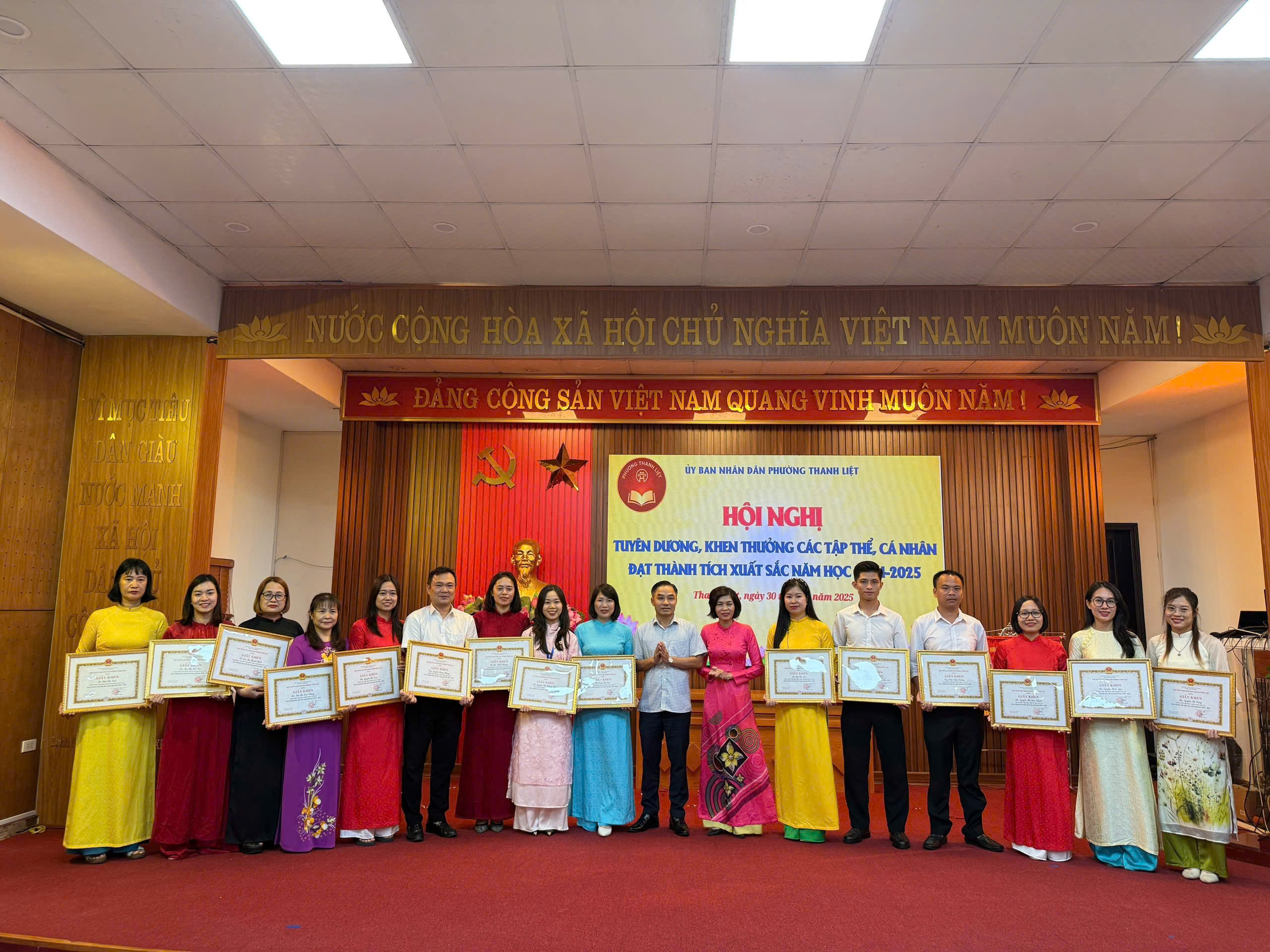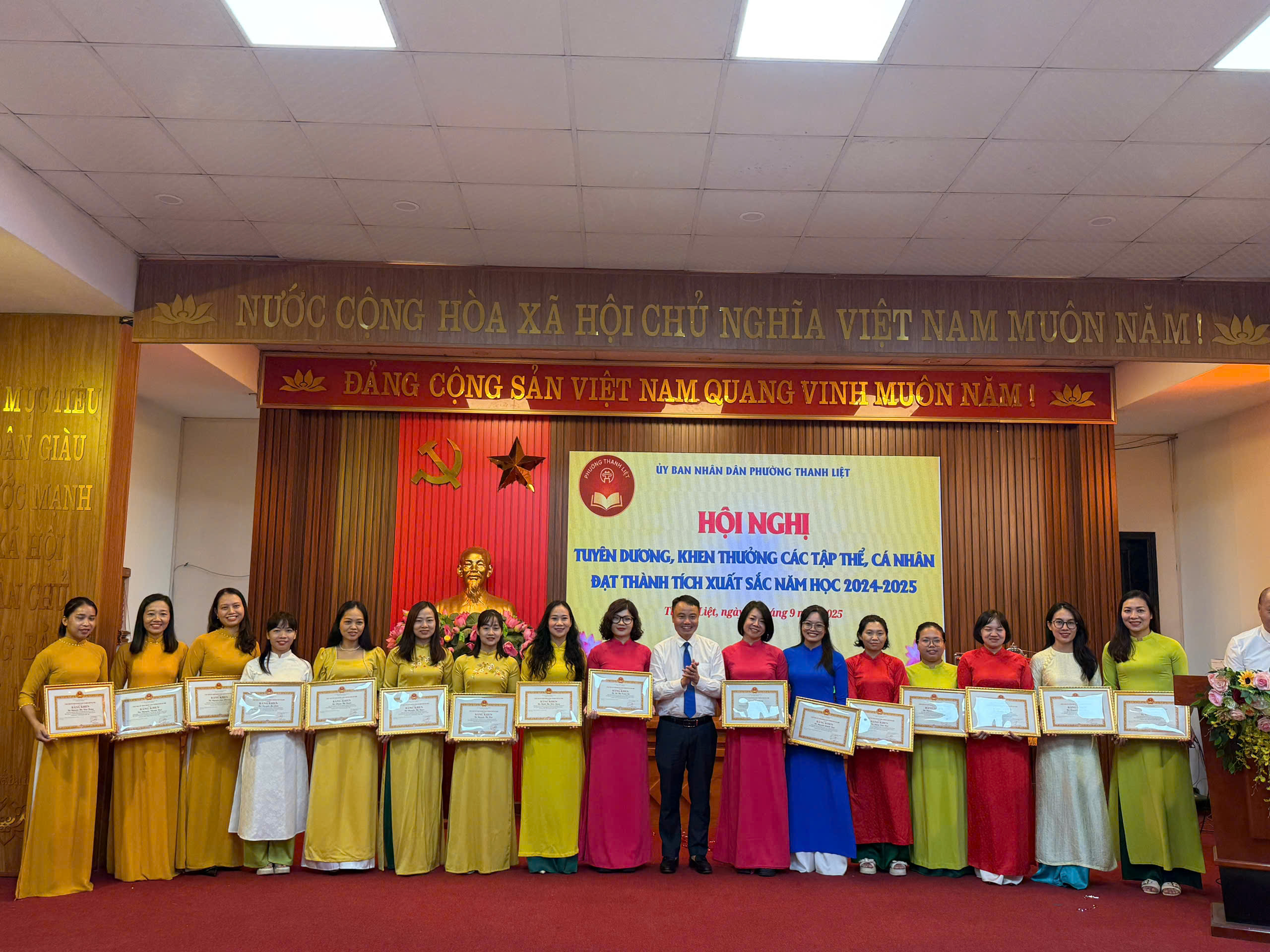 Cũng tại Hội nghị, cô giáo Nguyễn Quỳnh Nga và cô giáo Phạm Thị Lan đã vinh dự nhận Bằng khen và Giấy khen cho cá nhân đạt thành tích xuất sắc trong năm học 2024-2025. Đây là sự ghi nhận xứng đáng cho những nỗ lực, tâm huyết và cống hiến không ngừng của hai cô trong sự nghiệp giáo dục.