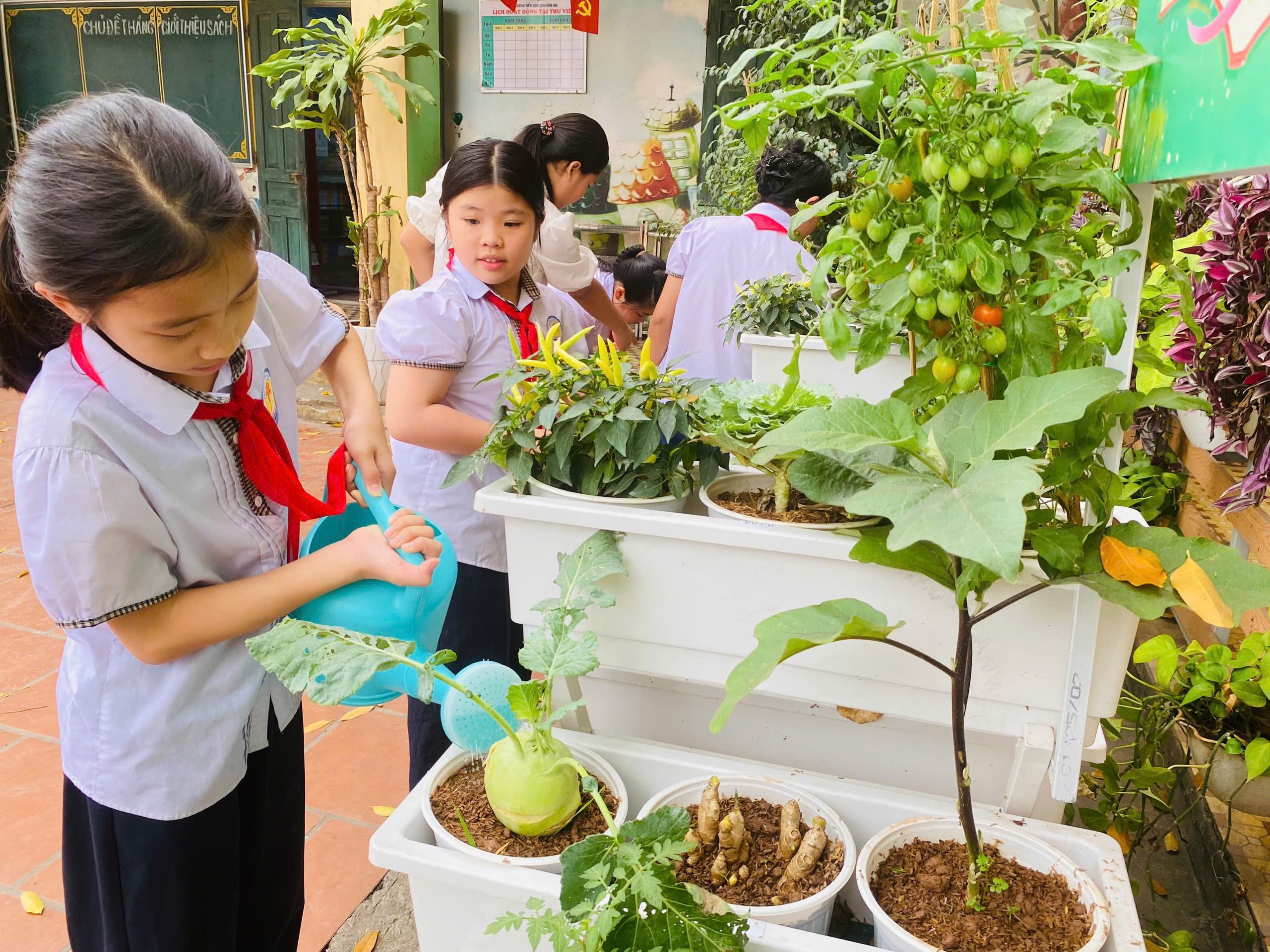Hoạt động không chỉ góp phần tạo nên không gian học tập xanh – sạch – đẹp mà còn mang ý nghĩa giáo dục sâu sắc. Thông qua việc trực tiếp tham gia gieo trồng, tưới nước và chăm sóc cây, các em học sinh được rèn luyện tính kiên trì, tinh thần trách nhiệm, cũng như hiểu hơn về giá trị của lao động và thiên nhiên.