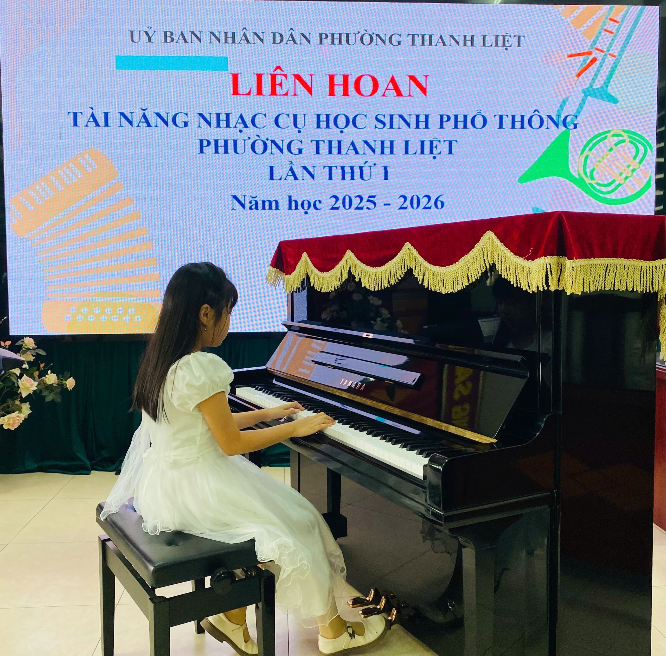 🎶 Liên hoan Tài năng Nhạc cụ học sinh Phổ thông của phường Thanh Liệt tổ chức vào sáng ngày 01/12/2025 thật sự bừng nở như một bức tranh âm nhạc sống động. Những giai điệu rộn rã, giàu cảm xúc vang lên từ sân khấu đã cuốn hút người xem ngay từ những phút đầu tiên. Những tiết mục xuất sắc nhất – đại diện cho các trường trong toàn phường – đã cùng nhau tạo nên một không gian nghệ thuật rực rỡ, nơi tài năng trẻ được khơi dậy, niềm đam mê được chắp cánh và sáng tạo được tỏa sáng.