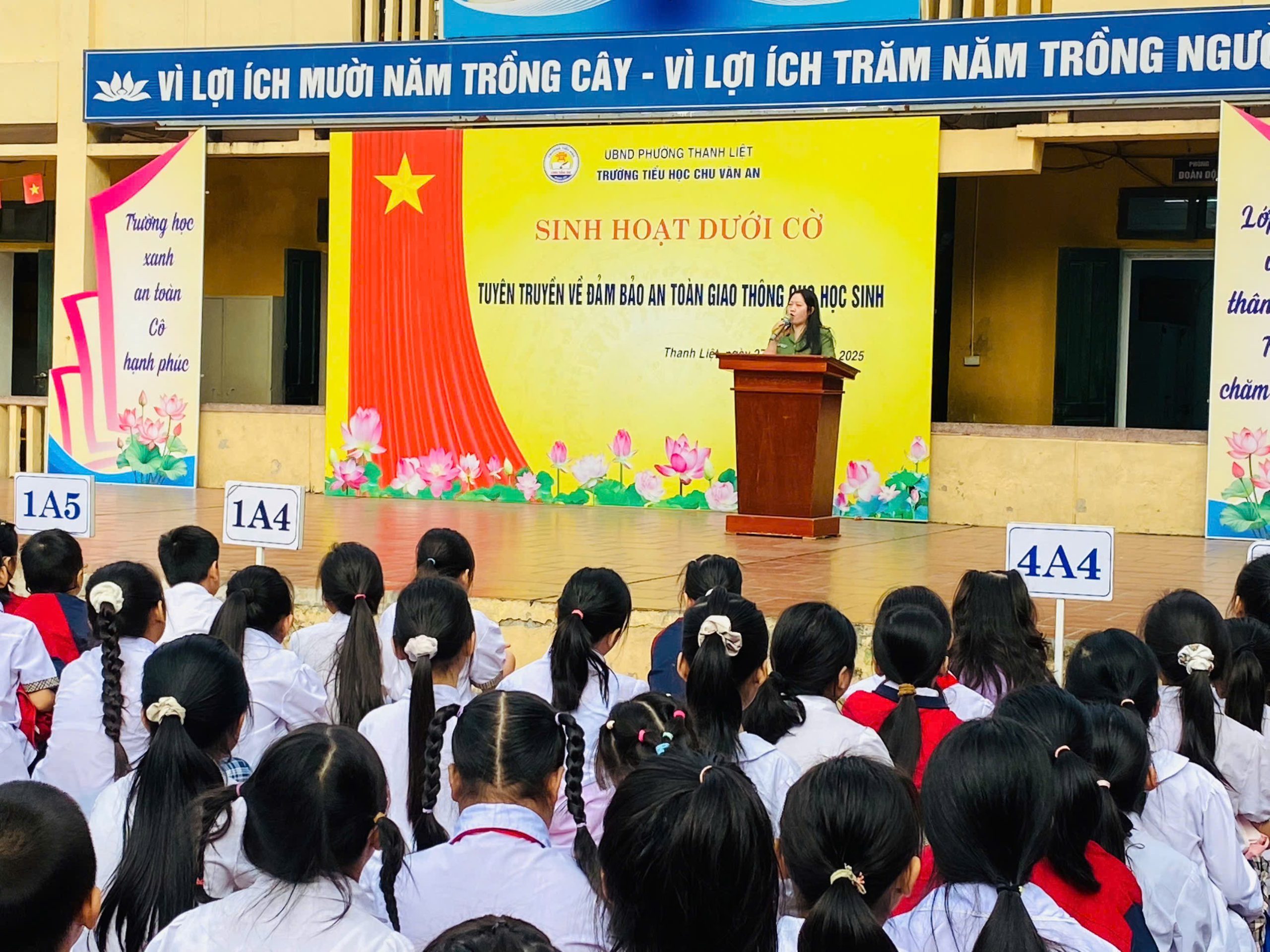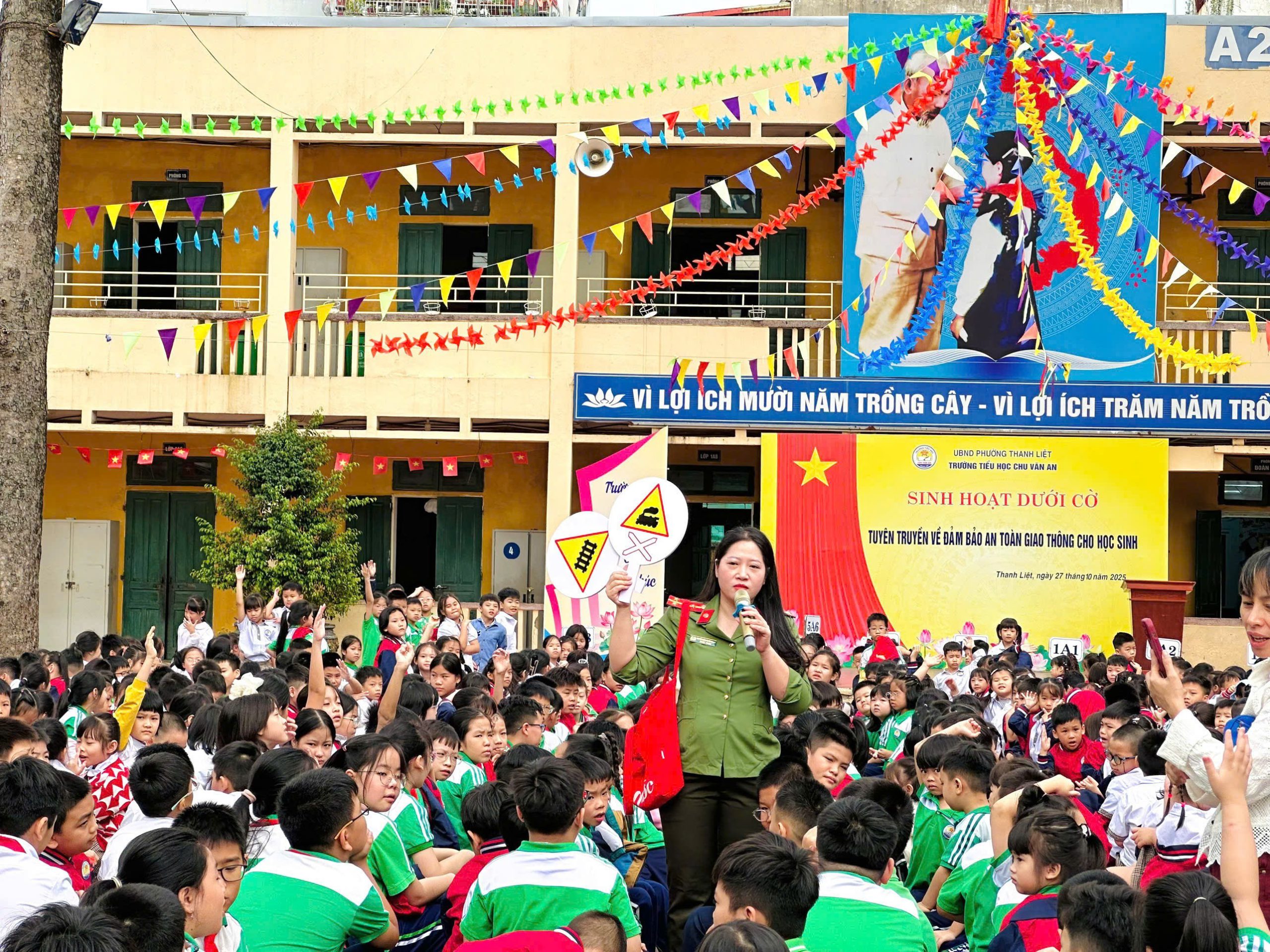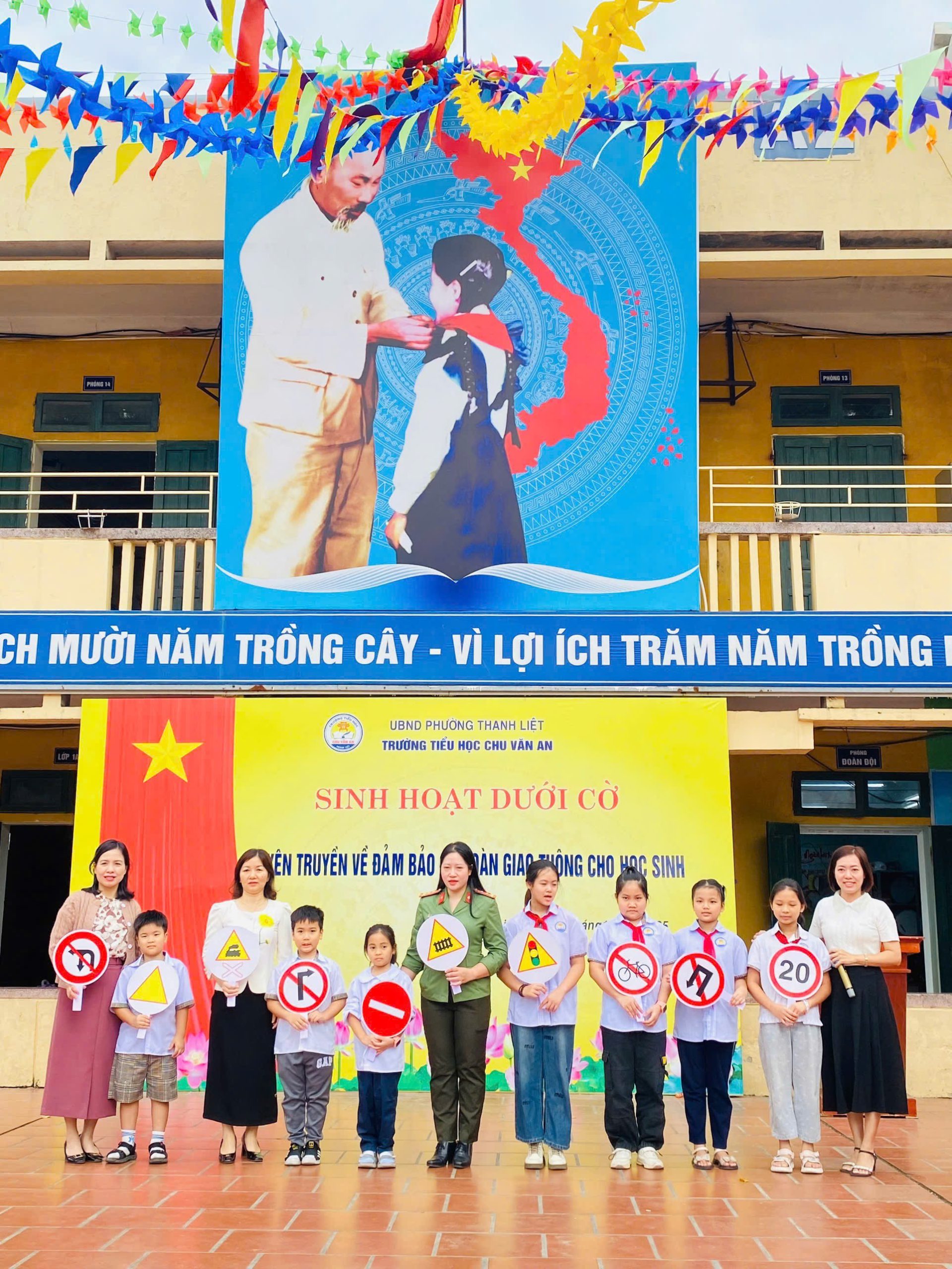 Sáng ngày 27 tháng 10 năm 2025, Trường Tiểu học Chu Văn An vinh dự được đón đồng chí Đại úy Nguyễn Đặng Huyền Trang – chuyên viên Tổ tổng hợp – Công an phường Thanh Liệt đến nói chuyện, tuyên truyền về An toàn giao thông cho toàn thể học sinh của nhà trường.