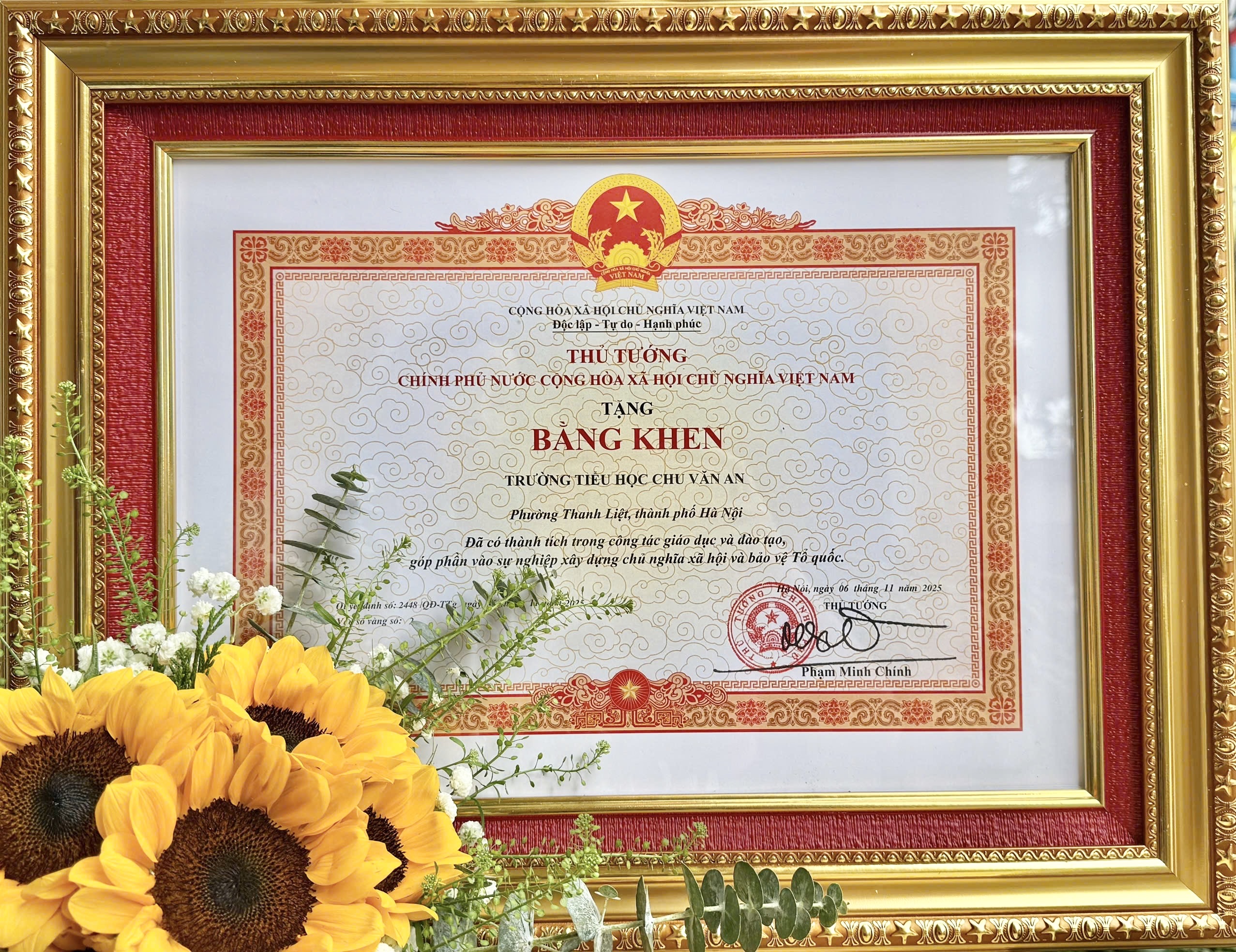 Thật tự hào khi Trường Tiểu học Chu Văn An (phường Thanh Liệt, Hà Nội) – trước đây là Trường Tiểu học Thanh Liệt – đã vinh dự được Thủ tướng Chính phủ tặng Bằng khen “Đã có thành tích xuất sắc trong công tác giáo dục và đào tạo, góp phần xây dựng chủ nghĩa xã hội và bảo vệ Tổ quốc”.