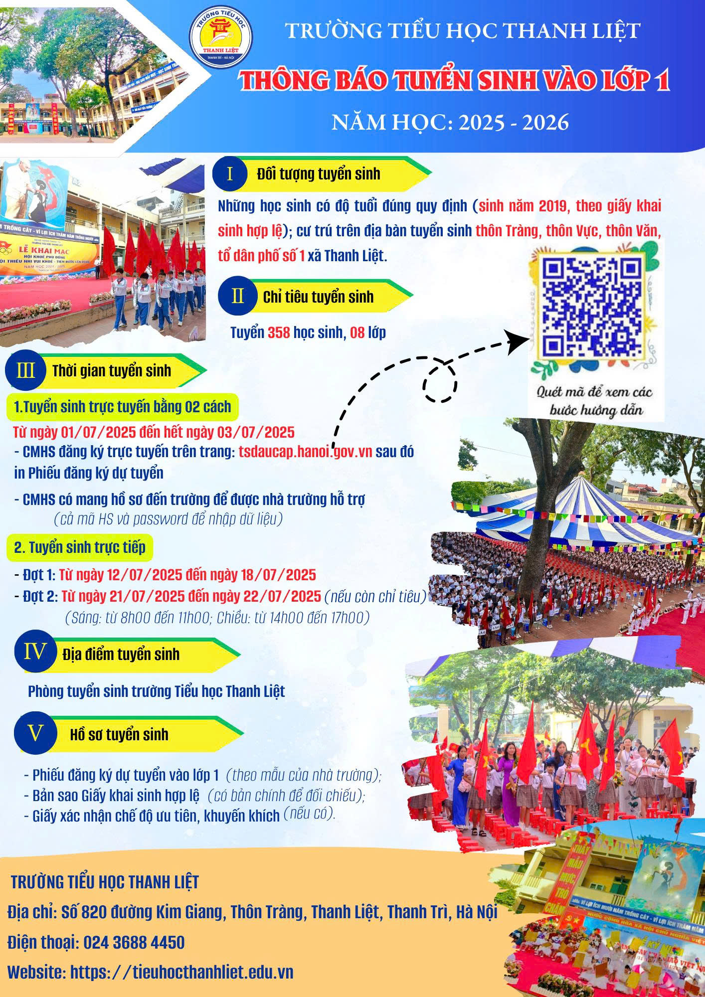 TRƯỜNG TIỂU HỌC THANH LIỆT THÔNG BÁO TUYỂN SINH VÀO LỚP 1 NĂM 2025 – 2026