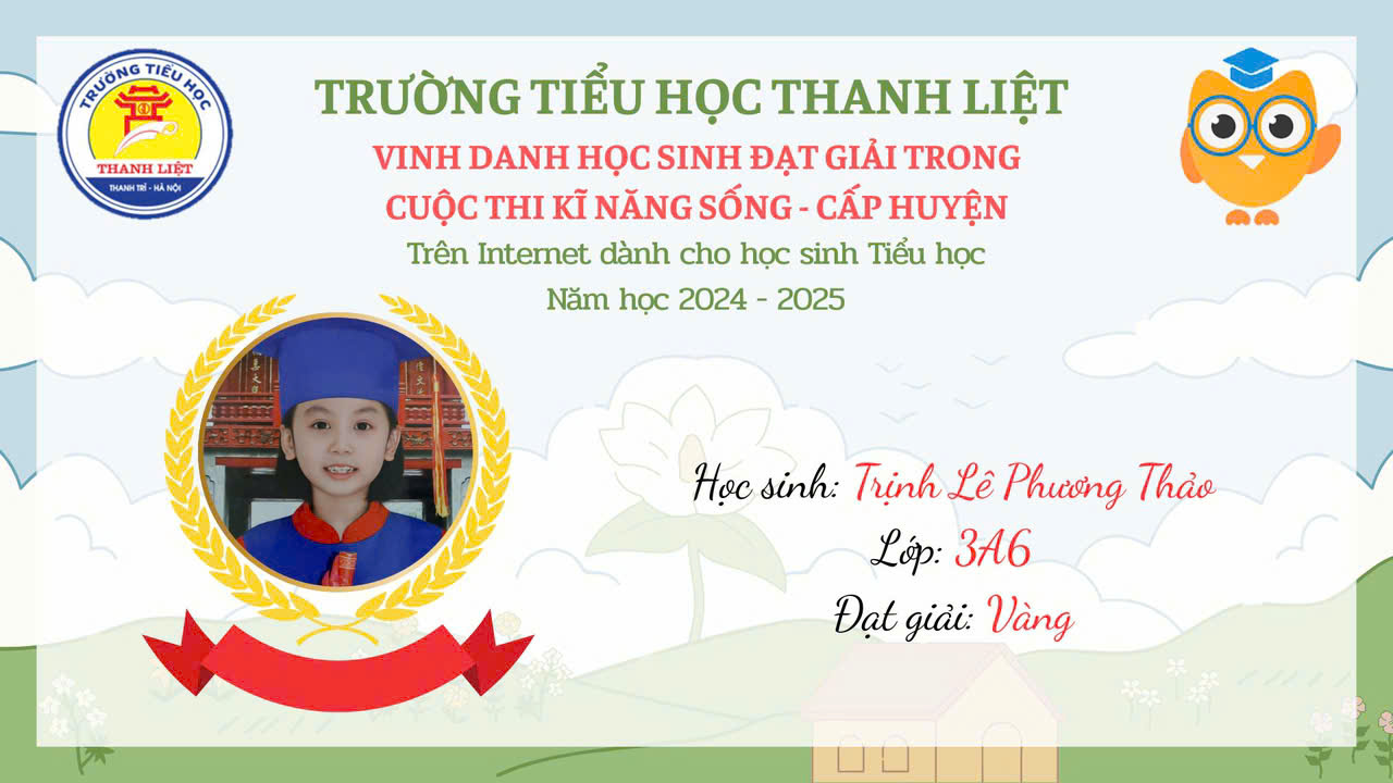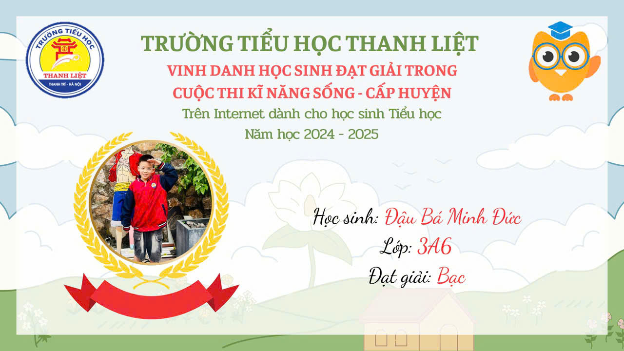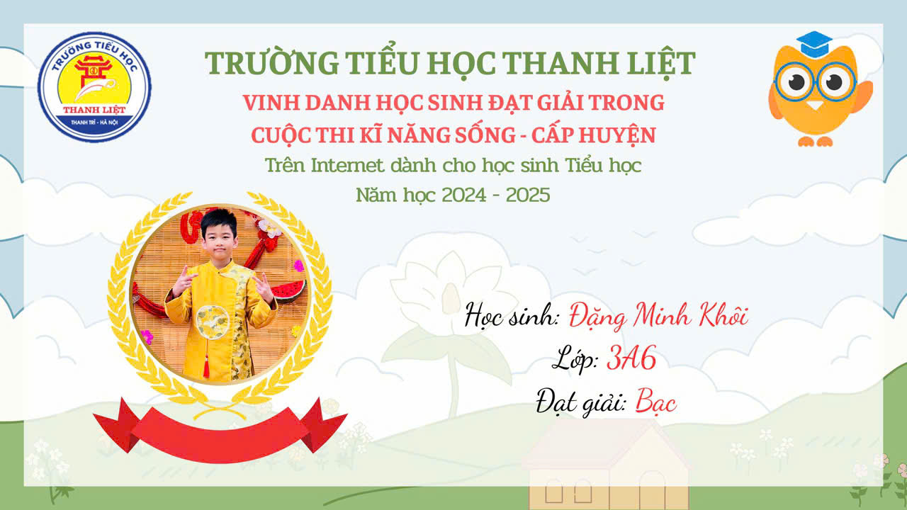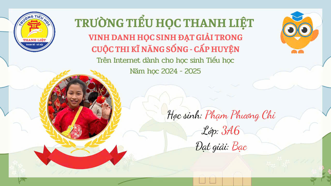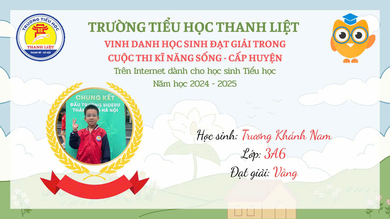 VINH DANH HỌC SINH ĐẠT GIẢI KĨ NĂNG SỐNG CẤP HUYỆN NĂM HỌC 2024 – 2025 9:35 sáng 14/03/2025 355 lượt xem Tweet Bài viết trước đó TRẠNG NGUYÊN TIẾNG VIỆT SÂN CHƠI BỔ ÍCH VÀ LÝ THÚ Bài viết sau đó LIÊN ĐỘI TRƯỜNG TIỂU HỌC THANH LIỆT HƯỞNG ỨNG CUỘC THI VIẾT THƯ QUỐC TẾ UPU LẦN THỨ 54 NĂM 2025 Bài viết liên quanHọc sinh trường tiểu học Chu Văn An tự tin chinh phục Trạng nguyên Tiếng ViệtTIẾT DẠY GIÁO DỤC THỂ CHẤT “LỘN TRƯỚC (LỘN XUÔI)” – MINH CHỨNG CHO SỰ ĐỔI MỚI VÀ TÂM HUYẾT CỦA GIÁO VIÊN TIỂU HỌCLịch công tác tuần 9 (Ngày 2/11 – 8/11/2025)Công khai các khoản thu, mức thu trong năm học 2025 – 2026 và dự kiến từ 2026-2030THÔNG BÁO MỜI QUAN TÂM VÀ THAM GIA THỰC HIỆN GỌI THẦU CUNG CẤP THỨC ĂN BÁN TRÚ TẠI TRƯỜNG TIỂU HỌC CHU VĂN ANLịch công tác tuần 36 (Ngày 26/5 -31/5/2025)