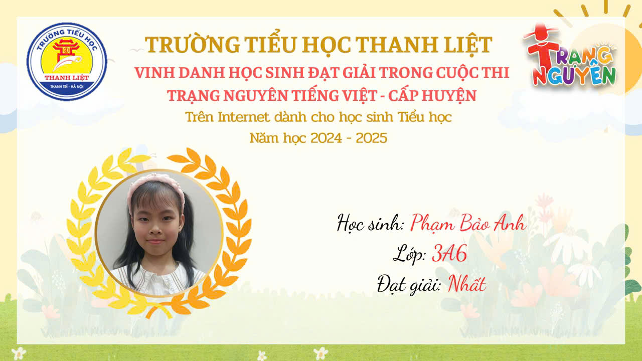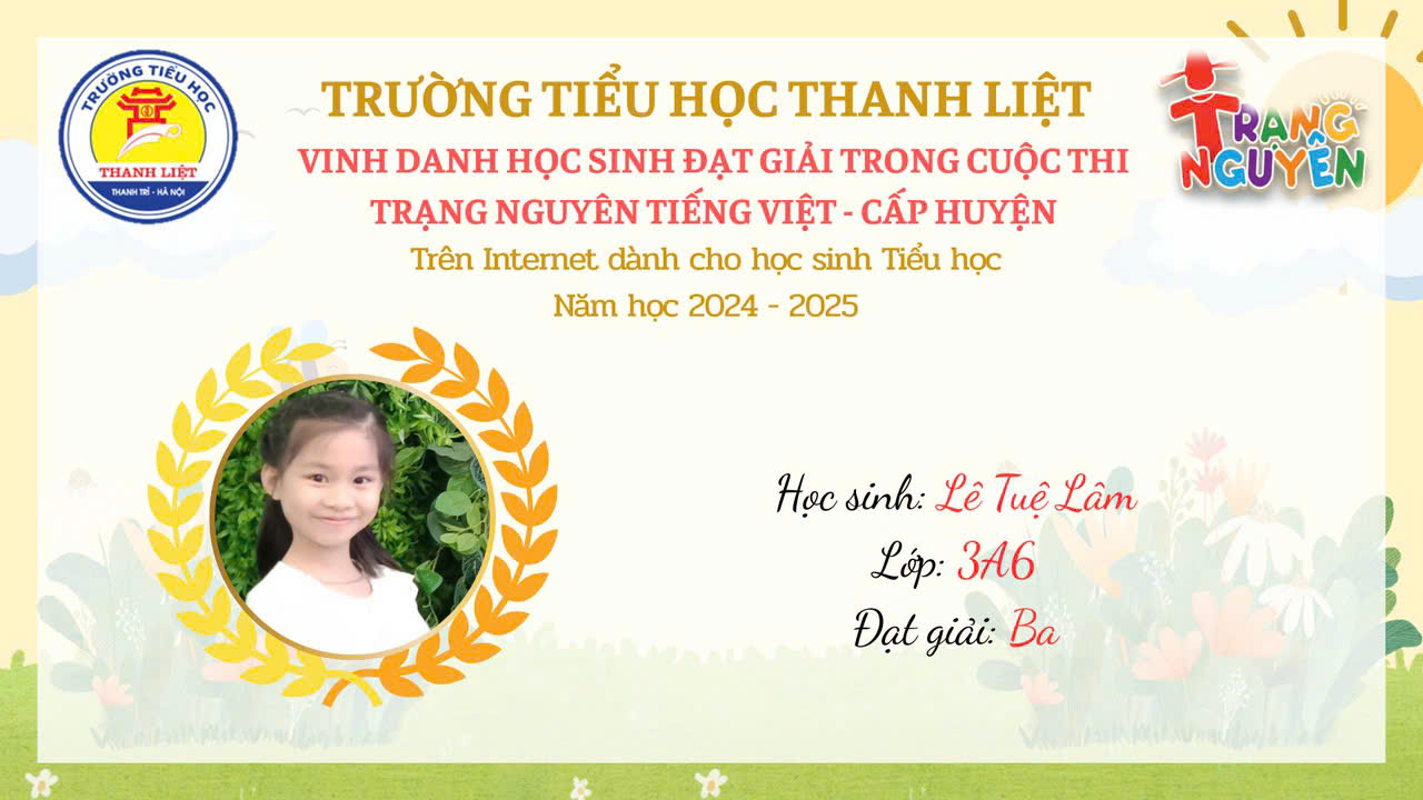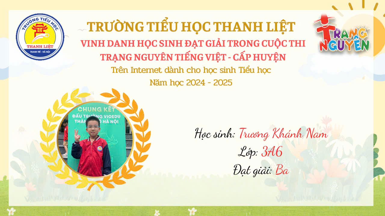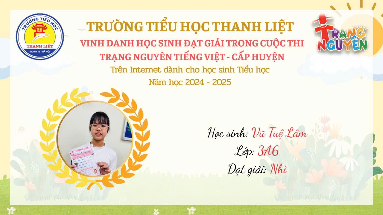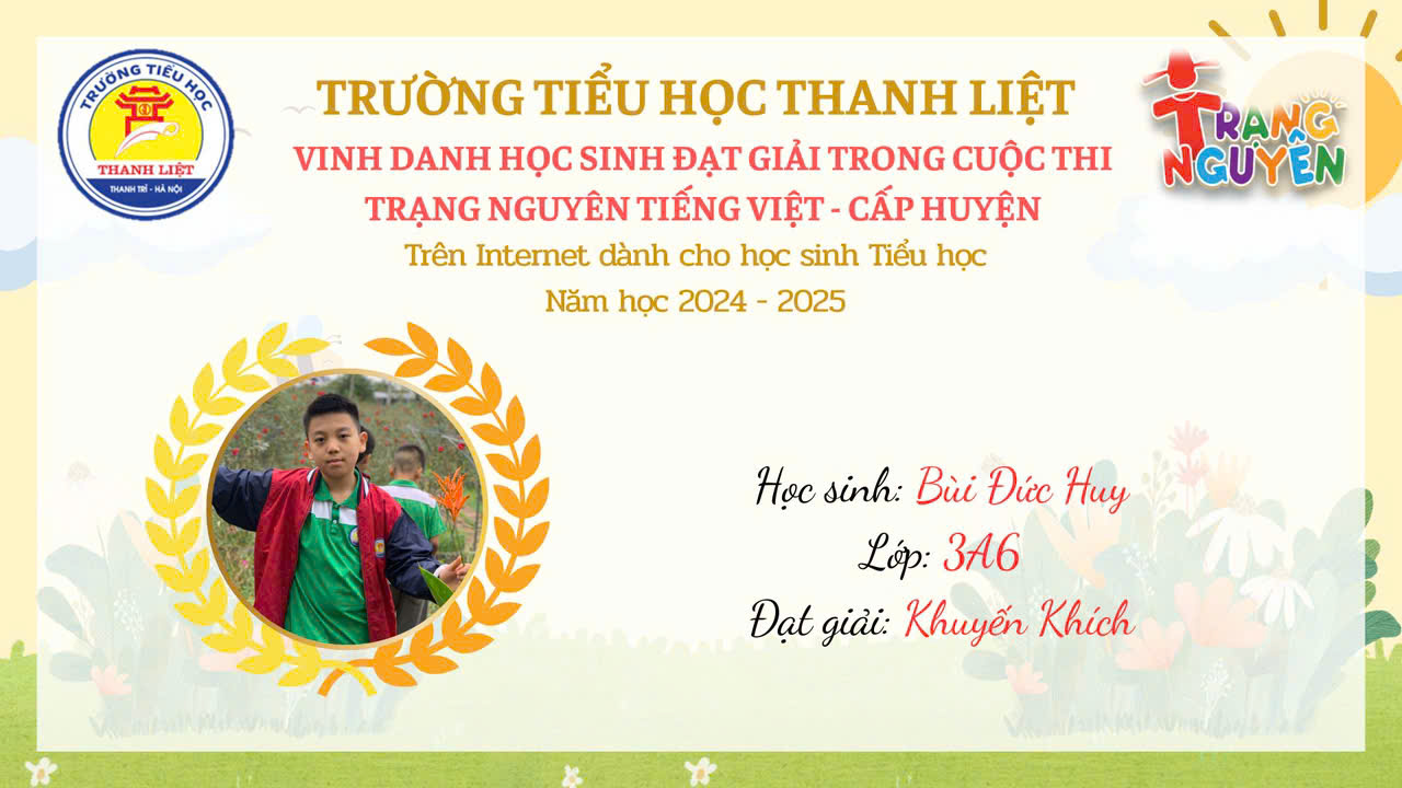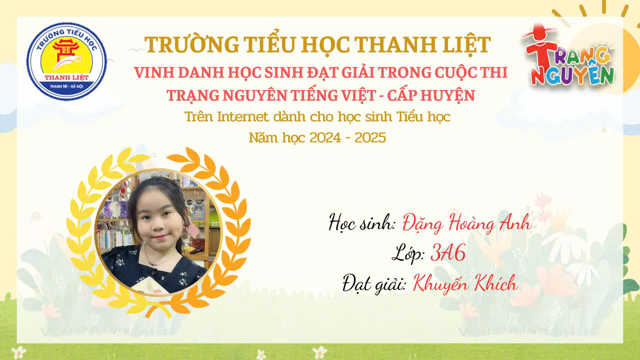 VINH DANH HỌC SINH ĐẠT GIẢI TRẠNG NGUYÊN TIẾNG VIỆT CẤP HUYỆN NĂM HỌC 2024 – 2025